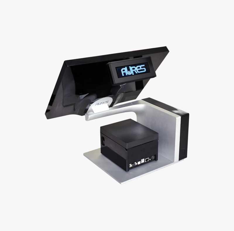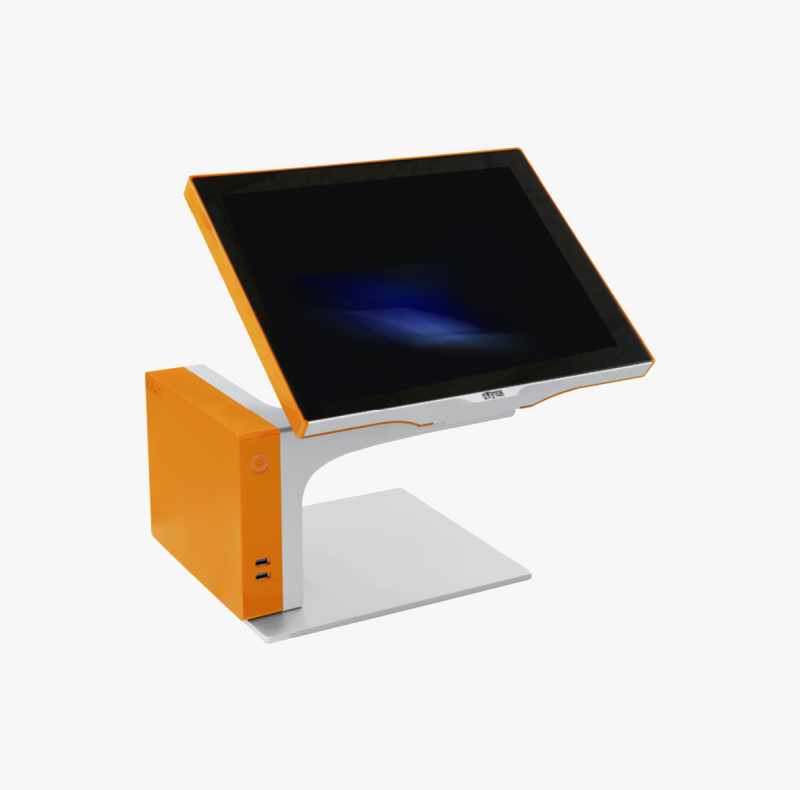Elégamment rattaché à son bras déporté en aluminium, véritable exo-squelette du TPV et support de son coeur technologique (UC), il conjugue esthétique minimaliste (disponible en 7 coloris au choix), ergonomie et faible consommation énergétique.